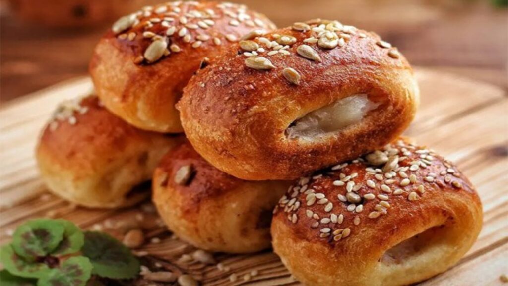 خمیر را باز کرده، به شکل دلخواه برش بزنید، داخل آن مربا، مغز یا شکلات بگذارید و فرم دهید. - استراحت دوم